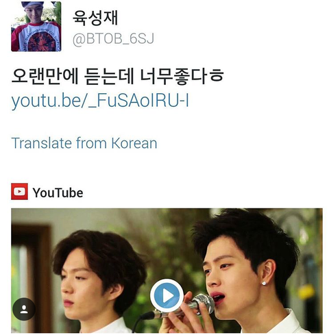 오늘자 육성재 노래추천 빼박 조이얘기ㅠㅠ