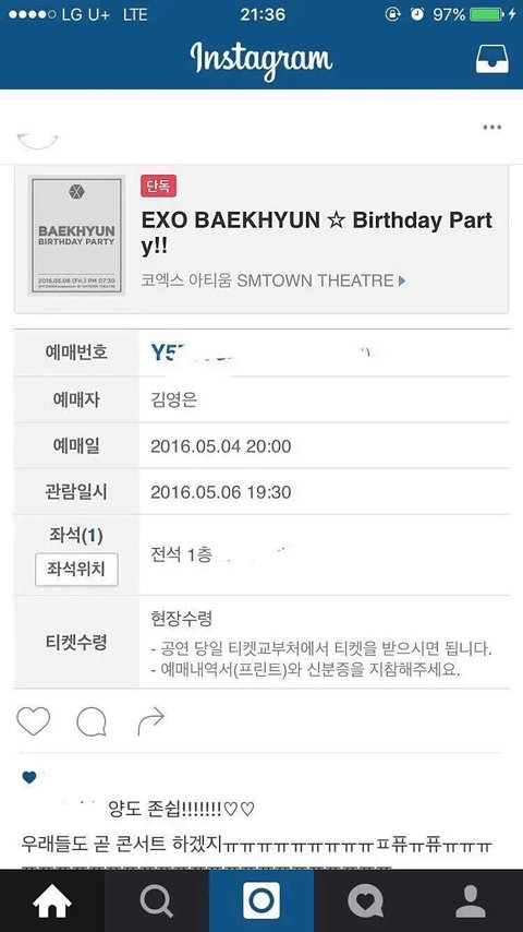 내일 5월 6일은 변백현 생일이라 아티움에서 큥일 파티 ( 변백현 생일 파티 ) 를 하기로 함. 엑소엘 가입자 중 추첨을 통해 티켓팅 대상을 뽑고 티켓팅을 하여 그 중 절반 정도가 가는 방식.