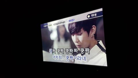 외가 친척들이랑 여행 와서 지금 노래방에서 노는데