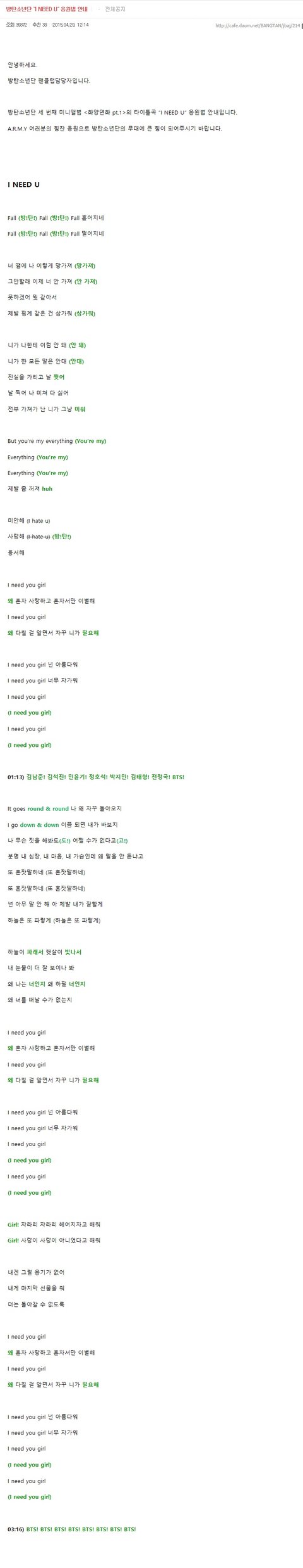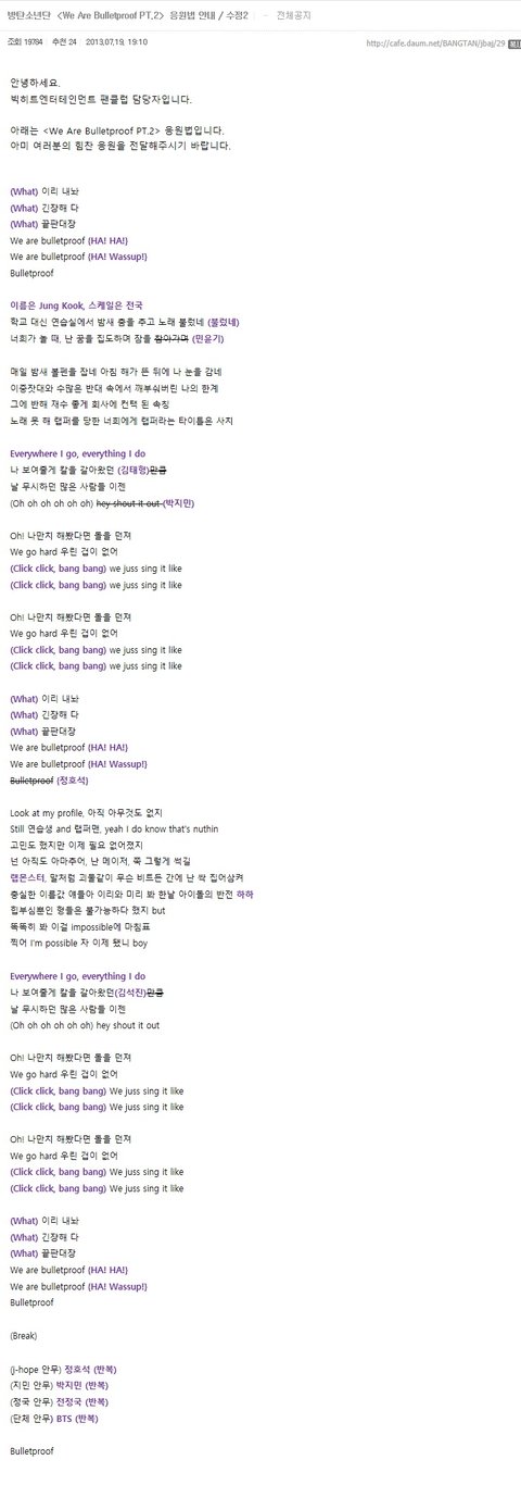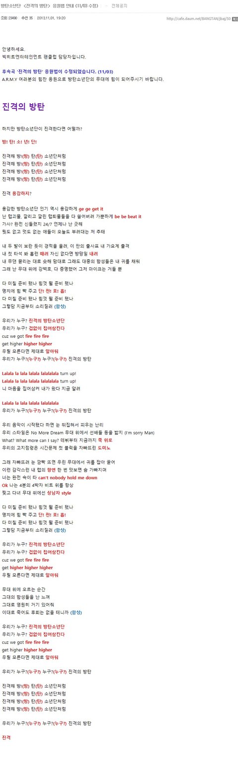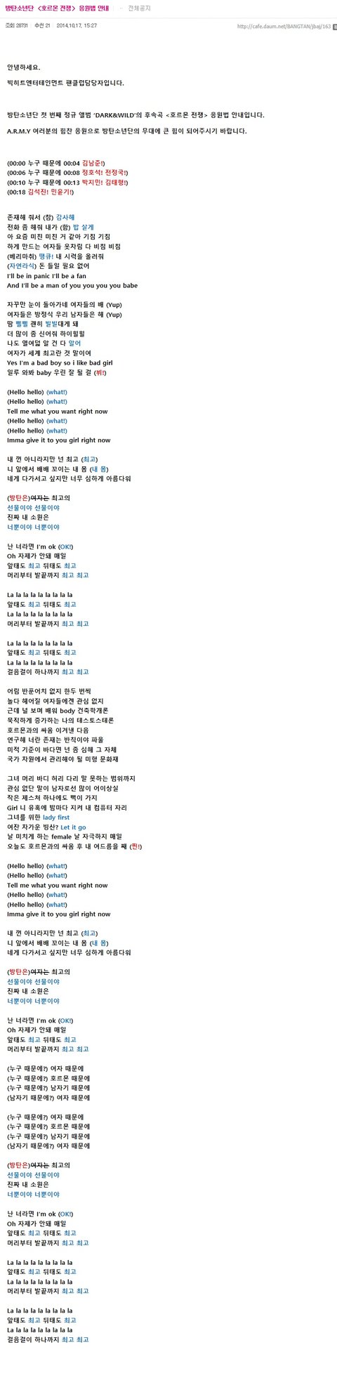 스압주의) 공카에 올라온 응원법 모음