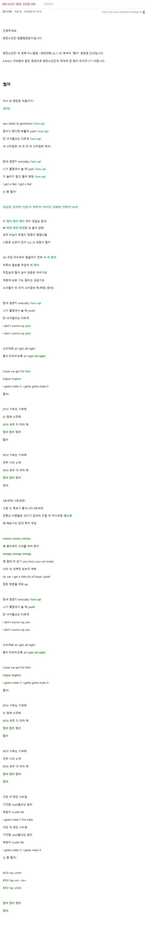 불타오르네 응원법에서