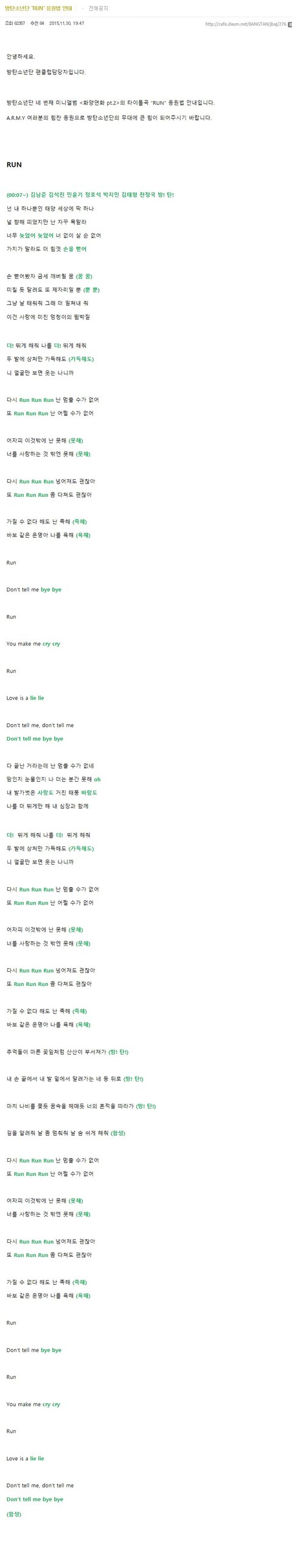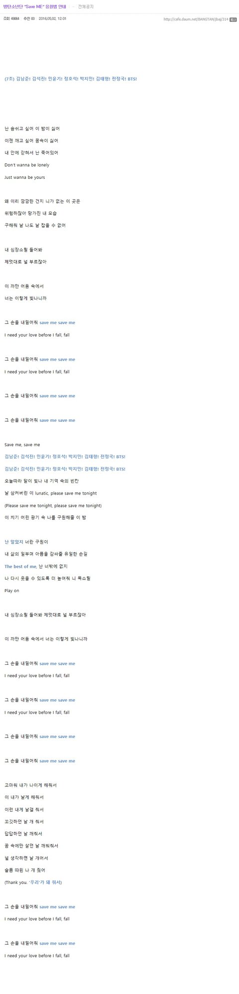 오늘은 응원법외우기로 밤새야지