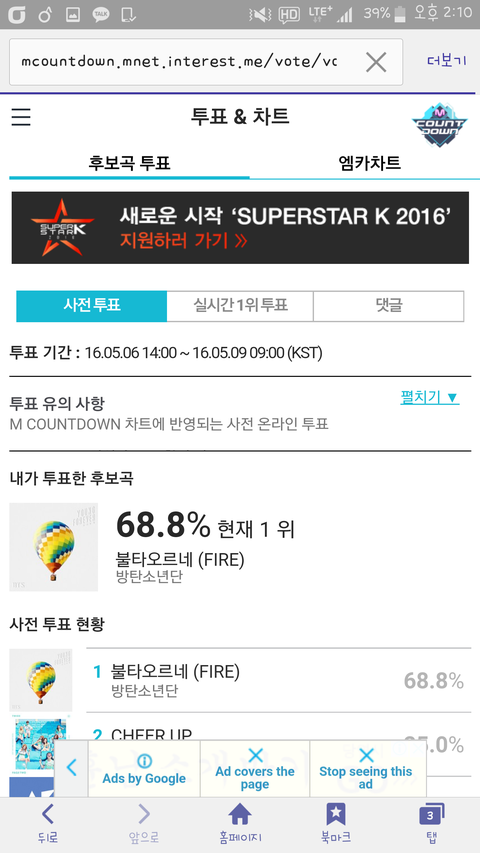 http://mcountdown.mnet.interest.me/vote/vote 이삐들 엠13카 투표하자!!!방탄 다음주 컴백하자마자 1등 하는거 봐야지!!