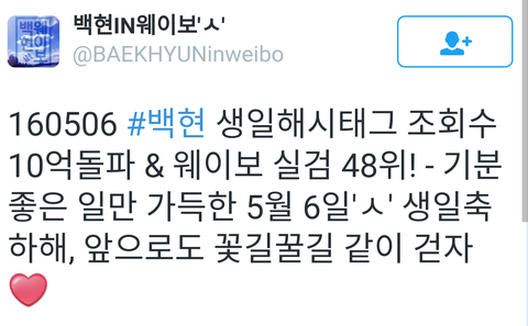 백현생일 해시태그 10억돌파