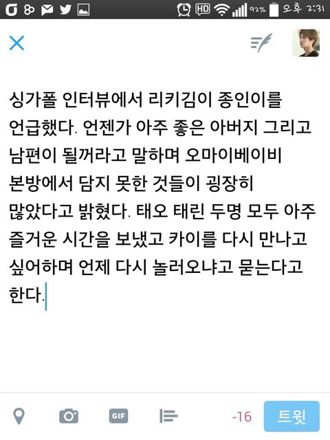 리키김씨 카이 언급
