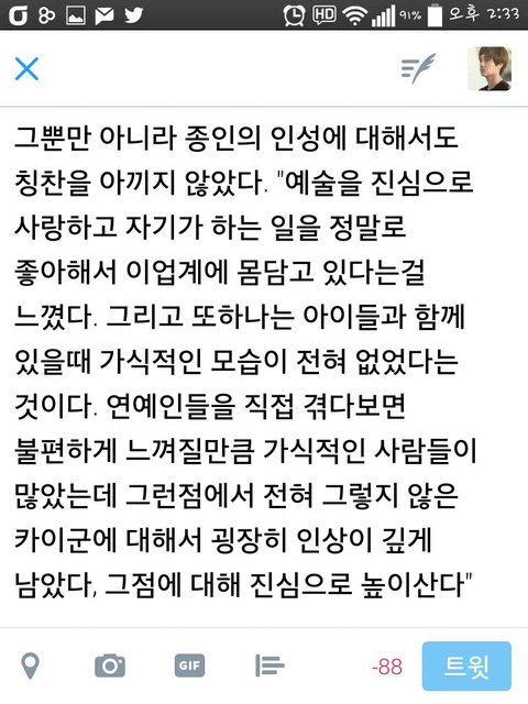 종인이 인성 정말 한번만 봐도 딱 눈에 보이지ㅜ 진실되고 예의바른 우리 종인이 어디가도 사랑받지♥