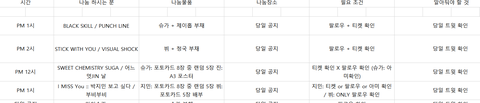 내가 나눔 받고 싶은 거만 정리한 건데 필요한 이삐 있으면 줄게ㅠㅠ 참고로 첫콘이고! 마 많지는 않아 내가 필요해서 만든거라... 호옥시 필요한 이삐 있으면 이메일 남기고 가!! (시간이나 장소 미정이라 되어있는 곳은 당일 공지 혹은 추후 공지라고 썼으니까 꼭 짹짹이 확인하고 가!! 가서도 짹 확인하는 거 잊지말고! 내가 잘못쓴 것도 있을 수 있으니까 짹 한 번 더 확인하구ㅠㅠ)