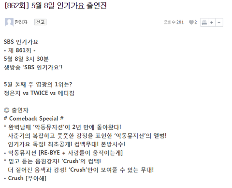 인기가요 1위 후보에도 없네