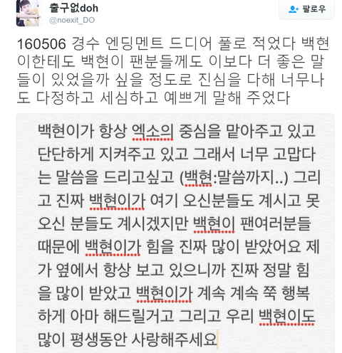 경수멘트 백현이가 에리한테 하고싶은말 같아ㅜㅜ