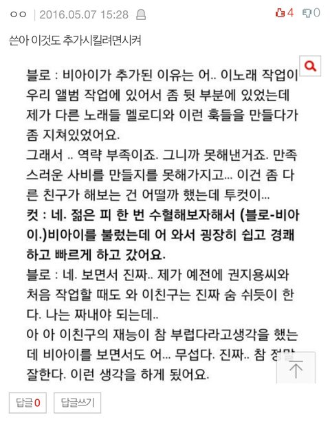 톡선에 있던 비아이 까글이 너무 어이가 없어서 입니다