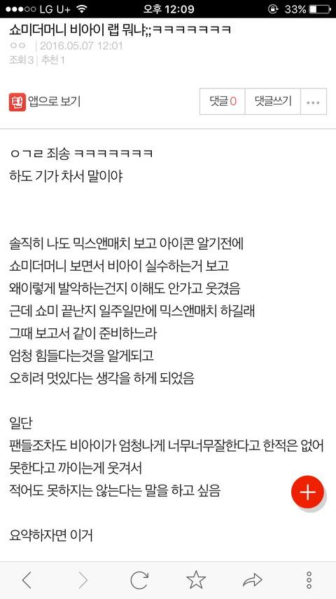 어떤분이 비아이 관련글 올림 추천 ㄱ