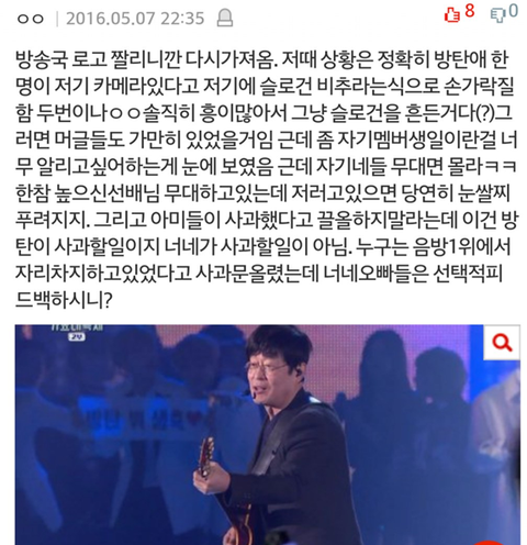 얘들아 나는 ㅠㅠㅠ 너무나도 선배님을 대하는 태도가 옳지 못하다고 생각해서 올린 것 뿐이야.. 어제까지 기세 등등했던 아미님들.... 어디계신가...ㅠㅠㅠ.ㅠ.ㅠ.ㅠㅠ.ㅠ.ㅠ..ㅠ