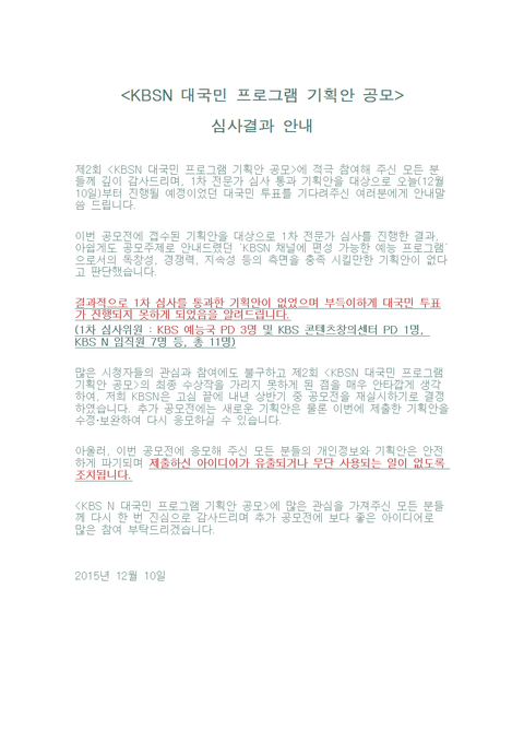 공모전으로 인해 이득을 본사람은 대국민이 아닌 KBS 측 관계자들일 뿐이라고 생각합니다.