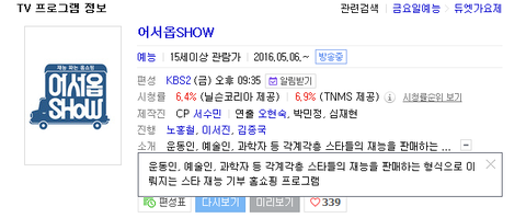 어제죠. KBS 새프로그램 어서옵쇼가 방송되었습니다. 책임자는 높으신 프로듀서님이시구요.