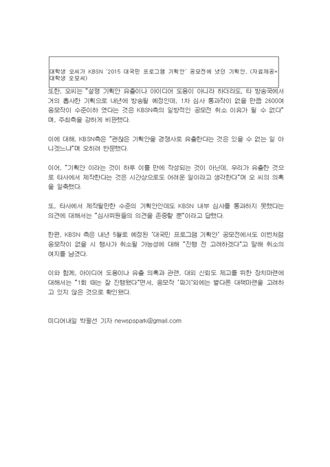 논란직후 공모전관련 기사입니다. 저말고도 피해자가 더있을수 있습니다.
