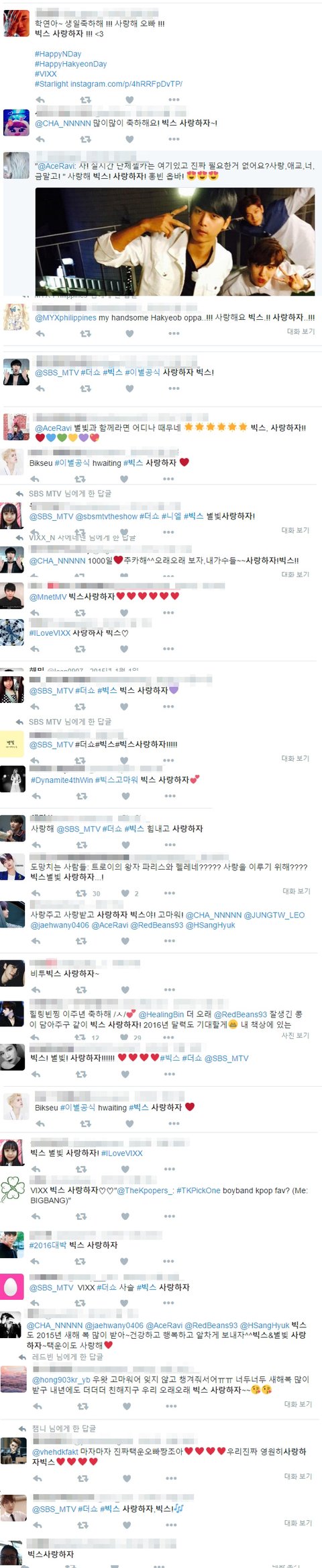 심지어 빅스팬들까지 쓸줄 몰랐다 진심; 날짜도 2015년이 거의고 2016년도 많음.