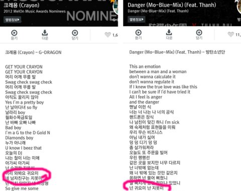 넌 귀요미 난 지못미 (2014.11.21. 방탄소년단 Danger (작사 랩몬스터, 슈가, 제이홉) +빅히트 프로듀서