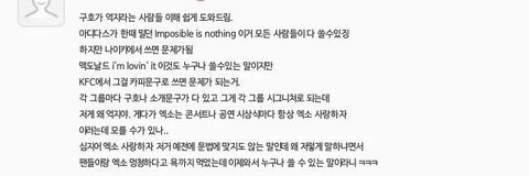 타 아이돌 언급 하지 맙시다. 논점 흐리기 금지예요.