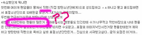 또한 방탄소년단 팬 분들 중 글 내용에 문제가 있거나 이해가 안되는게 있다면 말 둥글게 해서 문의해주세요.