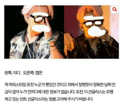 머리스타일과 선글라스가 겹치는 거에 대해 표절 제기