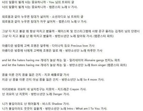 + 가사 제보 받은 거 추가합니다.