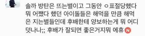 방탄한테는 직멘으로 욕하고 악플쩔던데?ㅋㅋㅋ 지가수는 소중하고 남의가수는 안소중한가봐