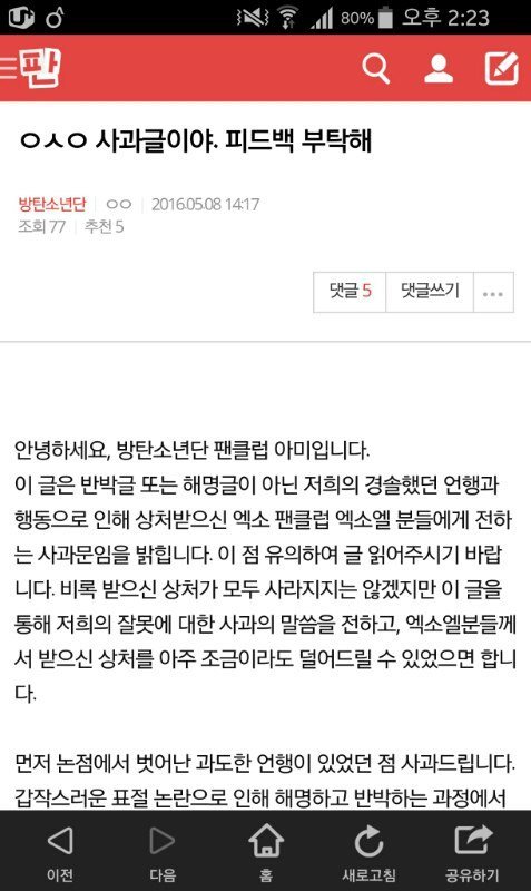 이 이삐가쓴글이더깔끔한거같아 나도저이삐글수정할거도와주고그럴테니깢사과문은 저 이삐글로하는게어때