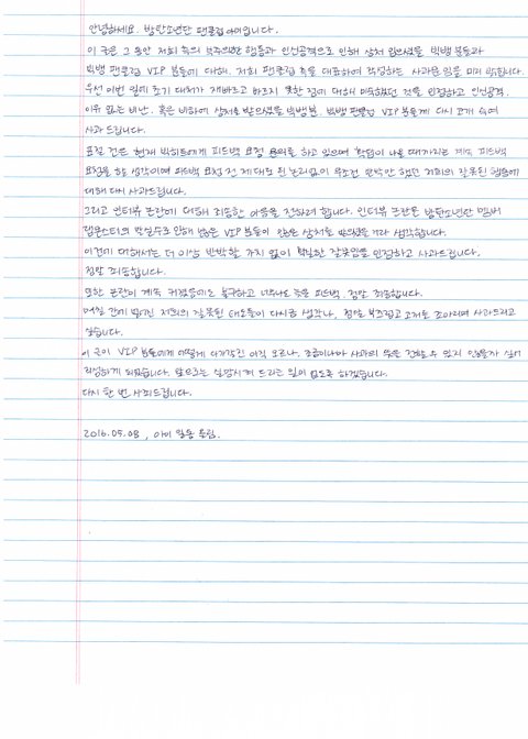 이삐들 빅3뱅 사과문 자필 쓴다는 이삐 아닌데