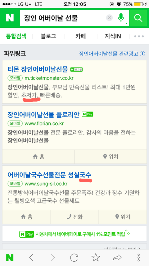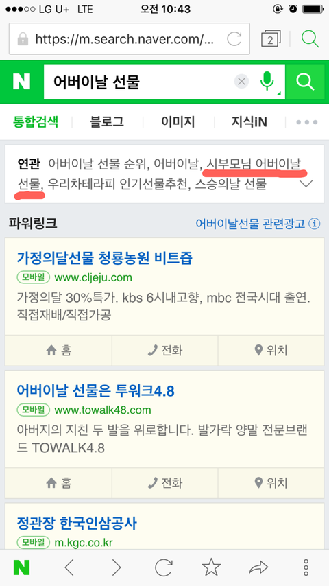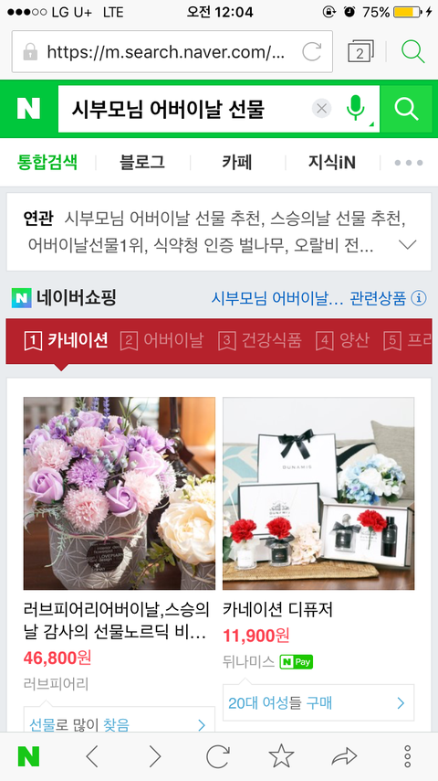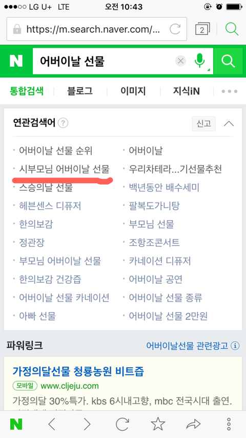 며칠 전 어버이날 선물로 뭘 해드려야 하나 고민하며 네이버 검색을 해보다가 재밌는 걸 발견했어요