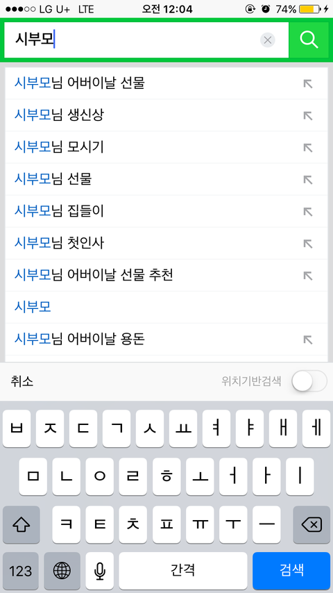 근데 연관 검색어에 저렇게 시부모님 어버이날 선물이 뜨길래