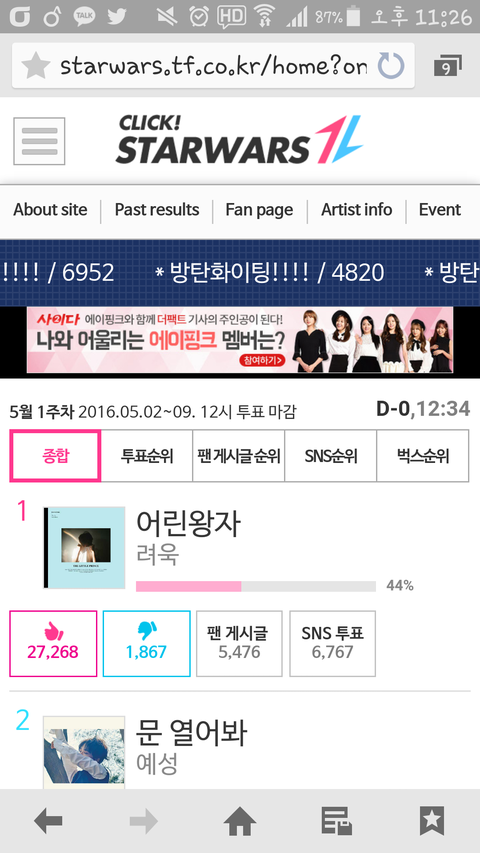 이거 4위로 밀려났어...ㅠㅠㅠ투표더 열심히 하자!!
