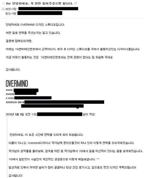 또한 overmind 디자이너작가님을 YG엔터테인먼트와 억지로 엮으려는게 아니고, 저희글이 조작되었다는 반박글에 대한 근거로서만 봐주십시오