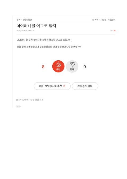 아이러니 글 슬슬 어그로 꼬일려고 하는거 같은데 이 이삐가 쓴 것 처럼 하자