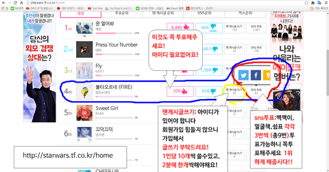 sns투표로도 충분히 순위 올라갈수있어 많이 퍼트려줘 사람들이 많이 투표 안하는것같아 ㅠㅠㅠ