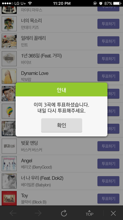 in기가요 투표도 꼭 하자ㅠㅠ 3표 해야하는데 별로 1위에 유력하지 않으신 분들한테 나머지 2표 하면되