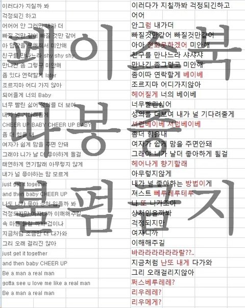 오늘 cheer up학교에서 틀어줬는데 발음을 몇몇개는 정말 못알아듣겠던거...