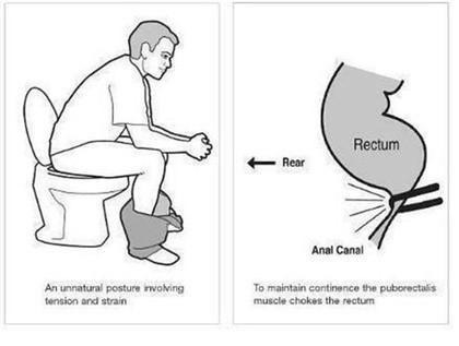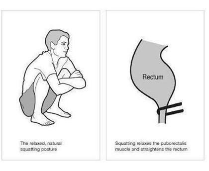 쪼그려 앉는 자세를 취하면 굽어있는 직장이 바로 펴진다고 합니다 당연히 힘을 줄때 그 압력의 전달이 더 강하게 전달됩니다.