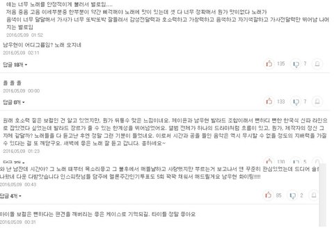 후렴부분에 리얼사운드로 연주되는 악기들과 고음 부분이 넘나 좋은 것