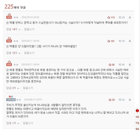 댓글들이랑 베플 지적한거임 니들이 몰려와서 댓글 분위기 선점해놓은거잖아