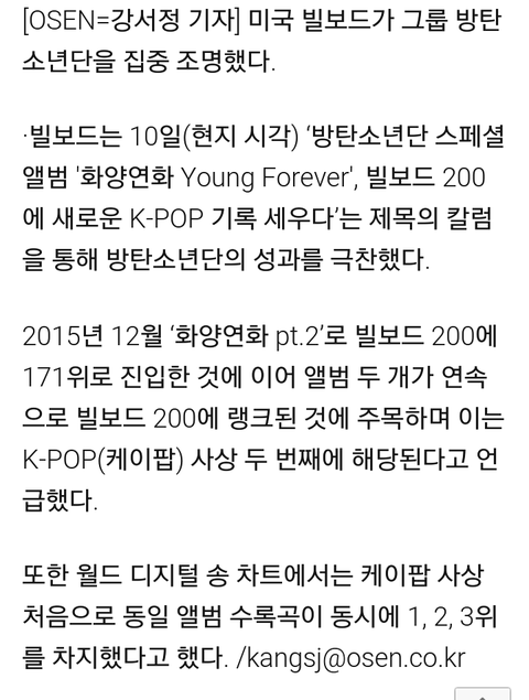 월드 디지털 송 차트에 케이팝 사상 최초로 1.2.3위에 동일 앨범 수록곡 랭크 ㄷㄷㄷㄷㄷ게다가 빌보드 200에 두 앨범이 연속으로 랭크된 건 케이팝 사상 2번째...오졌다;;;;;