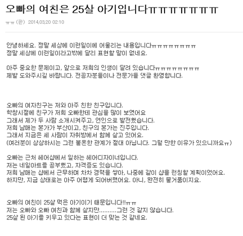 글쓴이가 어릴때 애를낳아서