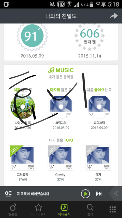 스밍인증! 스밍은 내폰이 저번에 침수되서 노래가 안틀어져 그래서 스밍은 노트북으로 돌리고있어!