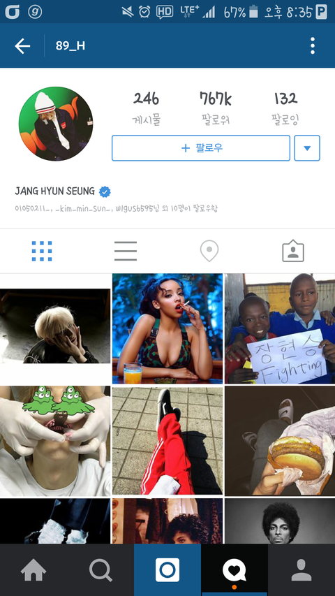 또 추가로 얘가 팔로한애들중 heaven890903이라고 장현승 악개 있고 야한ㄱㅖ정 팔로하고 마약사진 좋아요나 누르고...