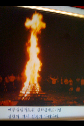 저희 신학생 영성 훈련중 캠프 파이어 모닥불에 천사와 십자가 모양이 포착돼 올려 봅니다.