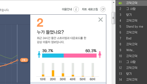 남자가 거의 40%..... 와... ㅇㅅㅇ 남자머글들이 많이 듣나봐...