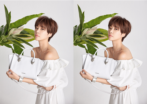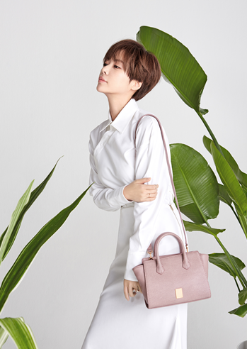 핑크색 쿠론 미니백에 화이트룩으로 전체 다 감쌌는데도 뭔가 섹시해…………