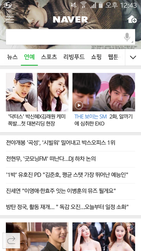 세훈 in 초록창 연예 메인