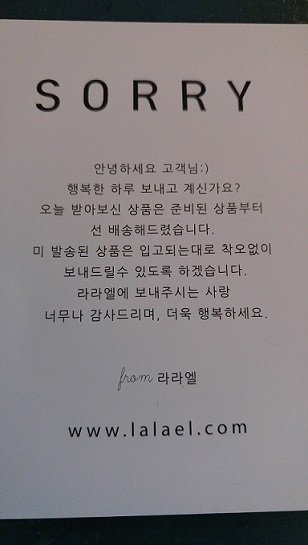 쪽지 : SORRY. 입고되는대로 보내줄께나 : 그게 언젠데 ㅠ