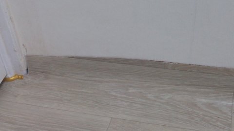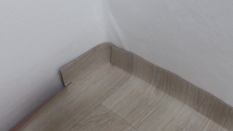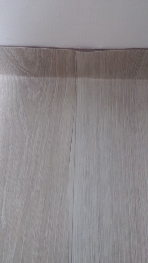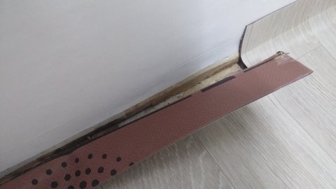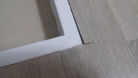 장판 모서리속으로 벽지에 칼집이 들어간모습