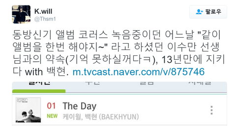 케이윌 선배님 트윗 with 백현